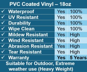 • Heavy duty covers made for long term use bearing 2-5 years warranty.